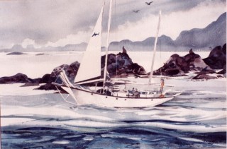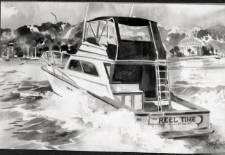 Looking for a unique Father’s Day gift? Can’t get any better than a custom piece of art from Margy Gates! She’s been doing boat portraits for many people–doesn’t a Dad deserve one? You can purchase a gift certificate, and with a photo of a boat, watch the magic Margy can make!